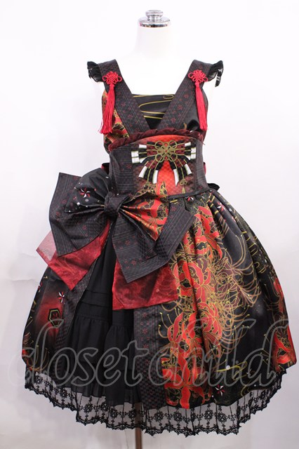 Atelier 17(海外ロリータブランド) / 『東洋魔女』彼岸花 曼珠沙華ジャンパースカート Free ブラック H-26-03-16-1001-LO-OP-NS-ZH