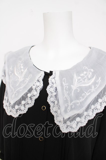 axes femme POETIQUE / 襟刺繍ボリューム袖ブラウス M 黒 Y-26-03-18-018-AX-BL-SZ-ZY
