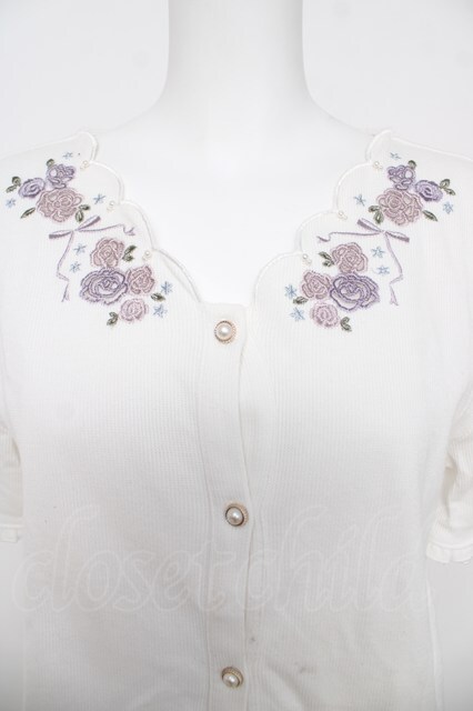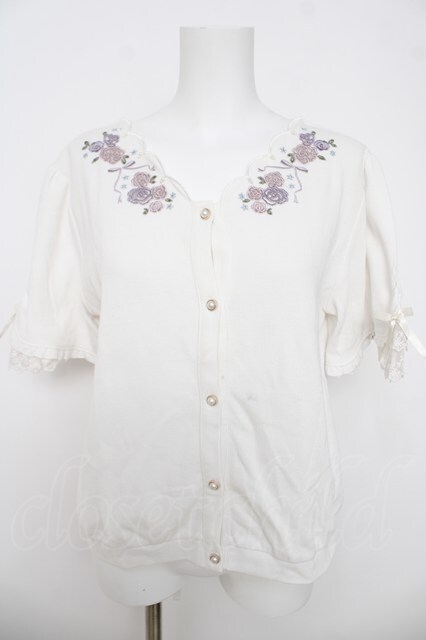 axes femme / ローズ刺繍カットカーディガン M 白 Y-26-03-18-055-AX-TO-SZ-ZY