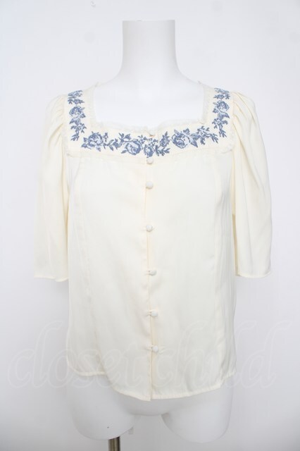an another angelus / スクエアネックアンティークローズ刺繍ブラウス F アイボリー Y-26-03-18-074-CA-BL-SZ-ZY