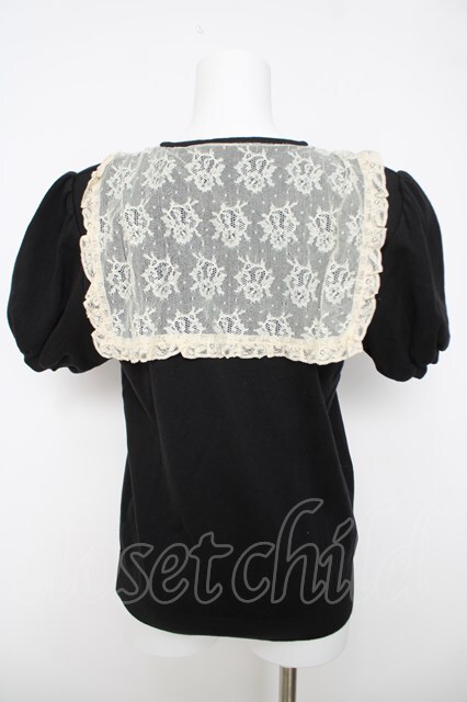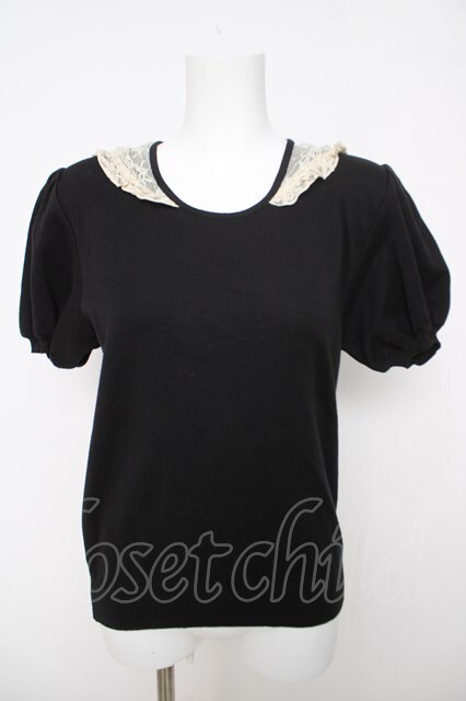 INGEBORG / レースセーラーカラー半袖ニット 黒 Y-26-03-18-086-LO-TO-SZ-ZY