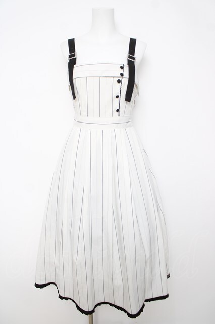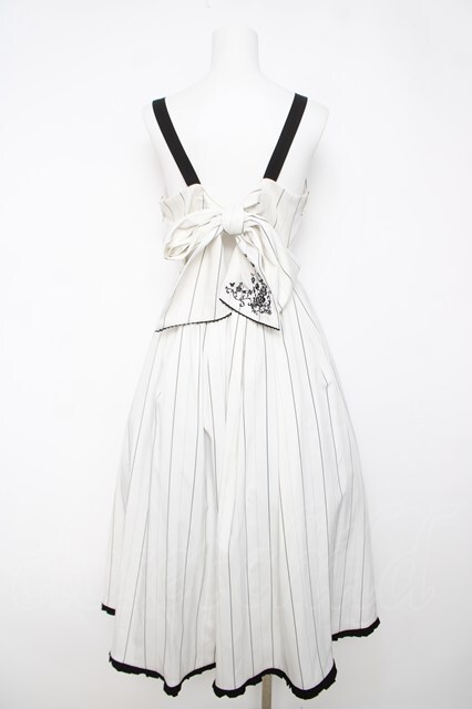 axes femme / バックリボンストライプジャンパースカート 白 Y-26-03-18-098-AX-OP-SZ-ZY
