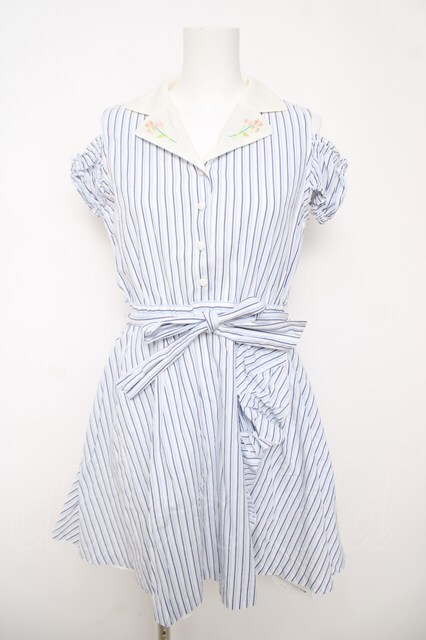 Secret Honey / 襟刺繍ストライプワンピース サックス Y-26-03-18-136-CA-OP-SZ-ZY [2100070000055829-Y-26-03-18-136-CA-OP-SZ-ZY]