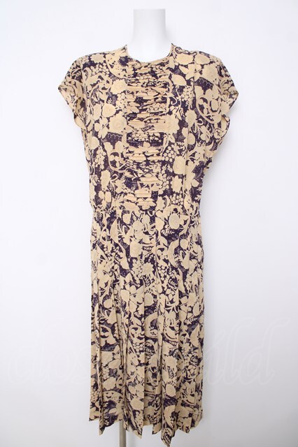 INGEBORG / 総花柄プリーツワンピース F 紫×ベージュ Y-26-03-18-155-LO-OP-SZ-ZY