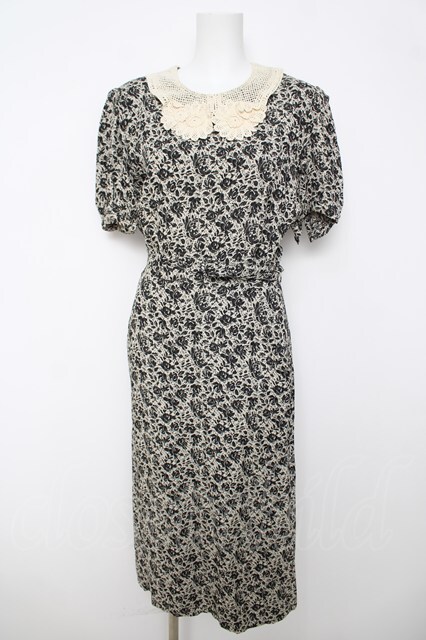 INGEBORG / バラ柄襟レースワンピース F オフ×黒 Y-26-03-18-156-LO-OP-SZ-ZY