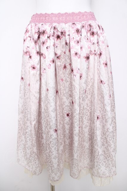 axes femme kawaii / 桜ジャガードスカート M ピンク Y-26-03-18-199-AX-SK-SZ-ZY