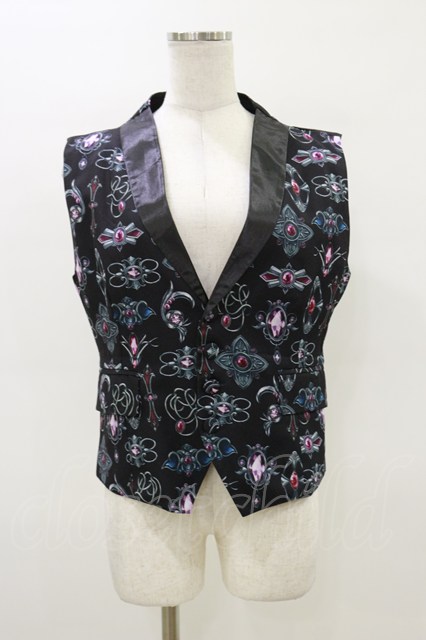 Drug Honey / アンティークブローチ柄サテンカラーベスト 黒 H-26-03-20-011-PU-TO-KB-ZH