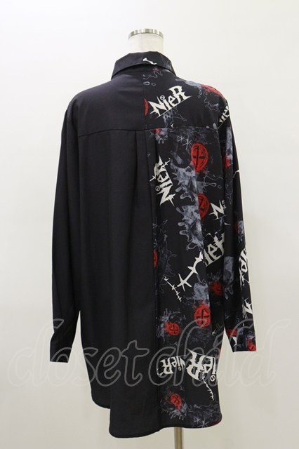 NieR Clothing / プリント切替シャツ ブラック H-26-03-20-028-PU-BL-KB-ZH
