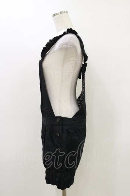 Emily Temple cute / ピンタックフリルサロペットパンツ 黒 H-26-03-20-036-ET-PA-KB-ZH