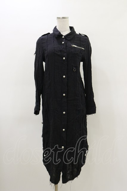 HELL CAT PUNKS / ダメージガーゼロングシャツ S ブラック H-26-03-20-018-PU-BL-KB-ZH [2100030000089839-H-26-03-20-018-PU-BL-KB-ZH]