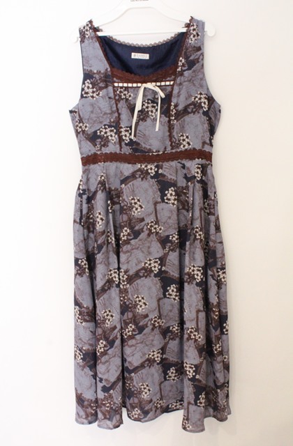 axes femme / ヴィンテージマップ柄ワンピ M ネイビー O-26-03-16-051-AX-OP-IG-OS