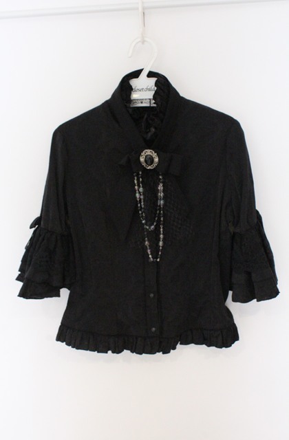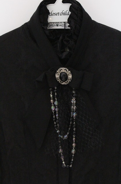 MARBLE / カメオタイ付きパールデコレーションクラシックブラウス M ブラック O-26-03-16-097-GO-BL-OW-OS