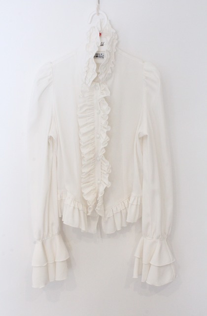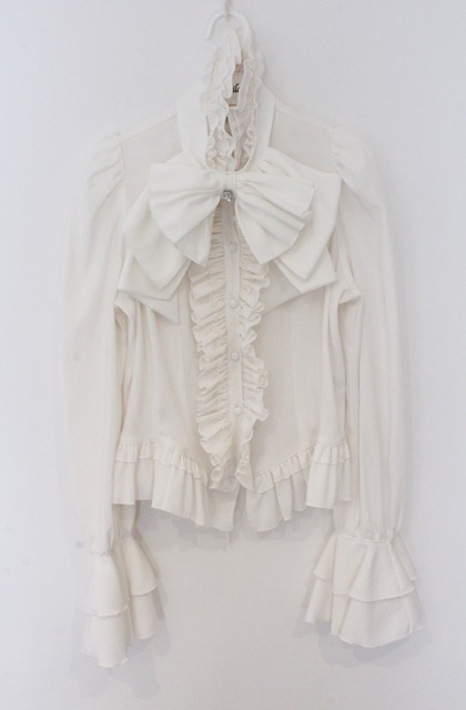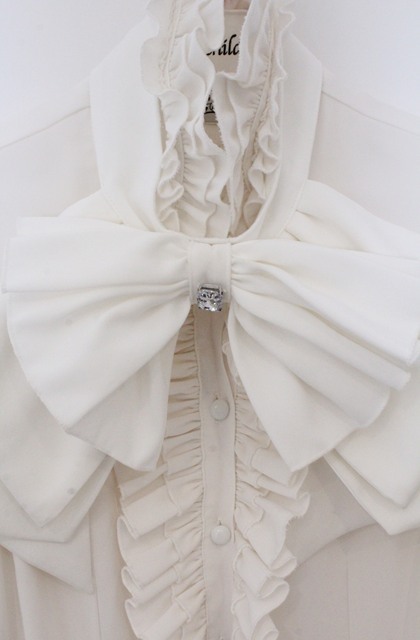 MARBLE / カメオ付きリボンタイフリルブラウス ホワイト O-26-03-16-098-GO-BL-OW-OS