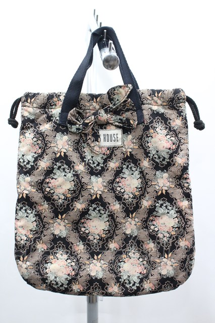 PINK HOUSE / ローズブーケプリント巾着バッグ 黒Xピンク I-26-03-16-110-LO-BG-SA-ZI