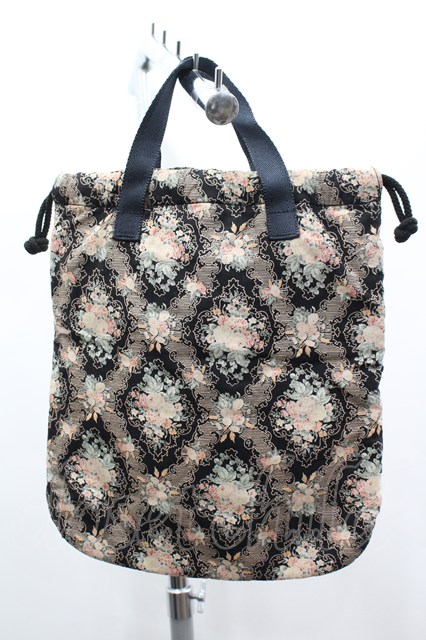 PINK HOUSE / ローズブーケプリント巾着バッグ 黒Xピンク I-26-03-16-110-LO-BG-SA-ZI [2100060000051411-I-26-03-16-110-LO-BG-SA-ZI]