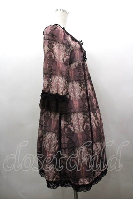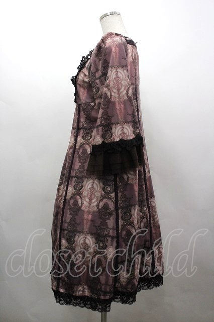 OZZ ANGELO / 胸元レース&総柄半袖ワンピース ボルドー I-26-03-16-086-OO-OP-SA-ZI [2100060000052436-I-26-03-16-086-OO-OP-SA-ZI]