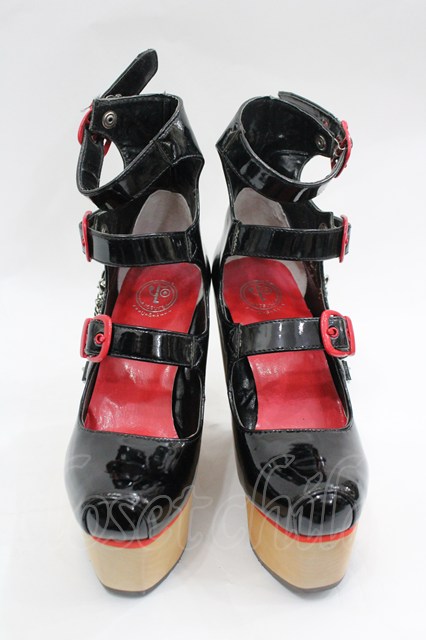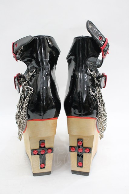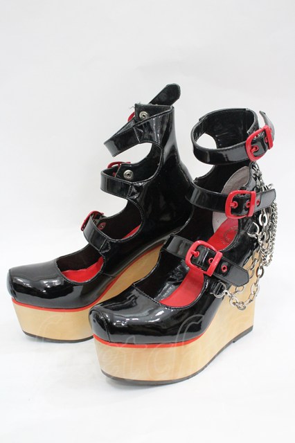 YOSUKE / 3連ベルトチェーン付木底シューズ 22.5 黒×赤 I-26-03-16-124-PU-SH-TE-ZI [2100060000052727-I-26-03-16-124-PU-SH-TE-ZI]