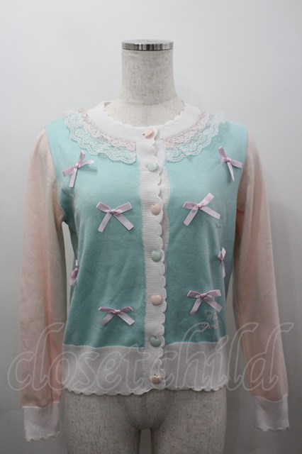 Nile Perch / リボン&2カラーデザインニットカーディガン ミントXピンク I-26-03-16-026-LO-TO-SA-ZI [2100060000052002-I-26-03-16-026-LO-TO-SA-ZI]