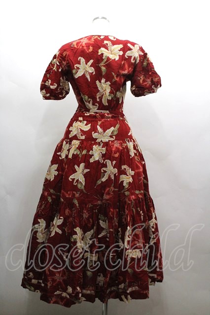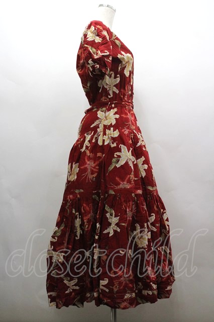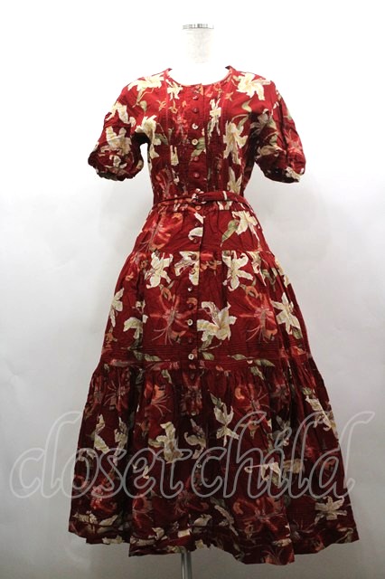 INGEBORG / 百合柄半袖ワンピース 赤X白 I-26-03-16-099-LO-OP-SA-ZI [2100060000051289-I-26-03-16-099-LO-OP-SA-ZI]