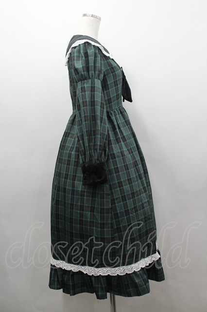 Eri Aino's collaboration / シャーロットの水曜日 ワンピース S グリーンチェック I-26-03-16-068-PU-TO-SA-ZI