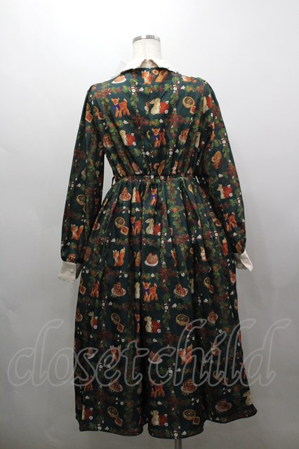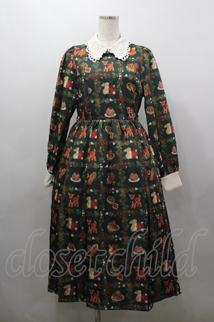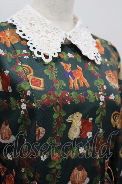 axes femme kawaii / 森のケーキ屋さん柄ワンピース M グリーン I-26-03-16-072-AX-OP-SA-ZI