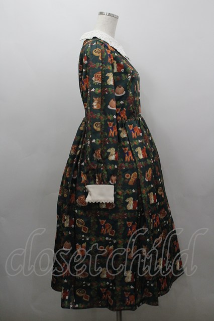 axes femme kawaii / 森のケーキ屋さん柄ワンピース M グリーン I-26-03-16-072-AX-OP-SA-ZI [2100060000052915-I-26-03-16-072-AX-OP-SA-ZI]