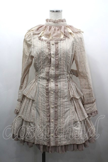 ALGONQUINS / チョーカー付きストライプ長袖ワンピース ピンク I-26-03-16-085-AL-OP-SA-ZI [2100060000052438-I-26-03-16-085-AL-OP-SA-ZI]