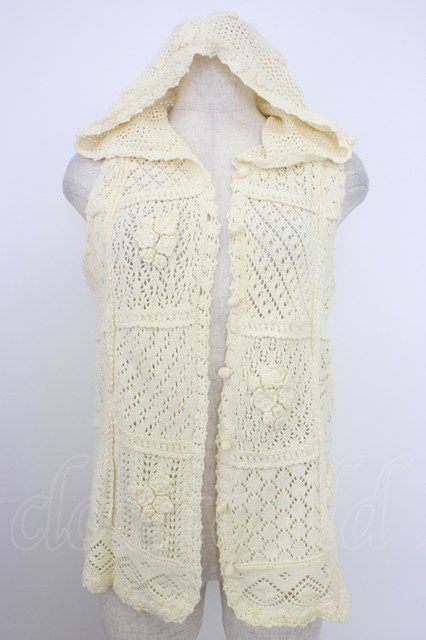 PINK HOUSE / カメリアモチーフパッチワークニットフードベスト アイボリー T-26-03-21-005-LO-TO-SA-ZT