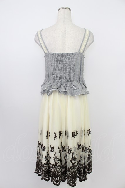 axes femme / 異素材組み合わせワンピース M グレー×アイボリー T-26-03-21-033-AX-OP-SA-ZT