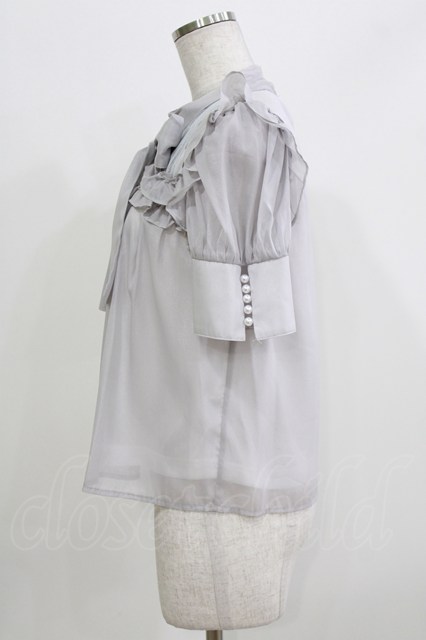 pium / スクエアフリルシアーラメ半袖ブラウス Free グレー H-26-03-21-044-0-BL-NS-ZH