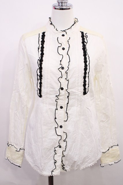 axes femme / 配色フリルブラウス M オフ/ブラック H-26-03-18-1030-AX-BL-NS-ZH [2100030000049918-H-26-03-18-1030-AX-BL-NS-ZH]