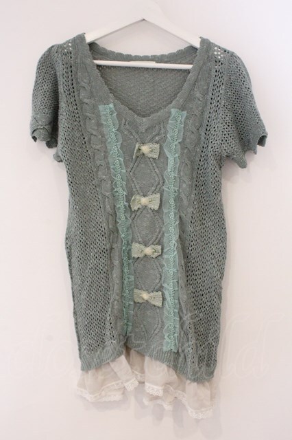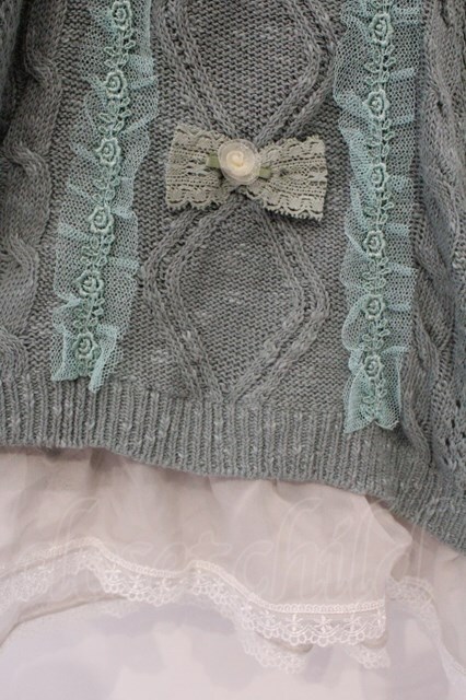 axes femme / プチバラ使い透かし編みボレロ M グリーン O-26-03-19-055-AX-TO-OW-OS