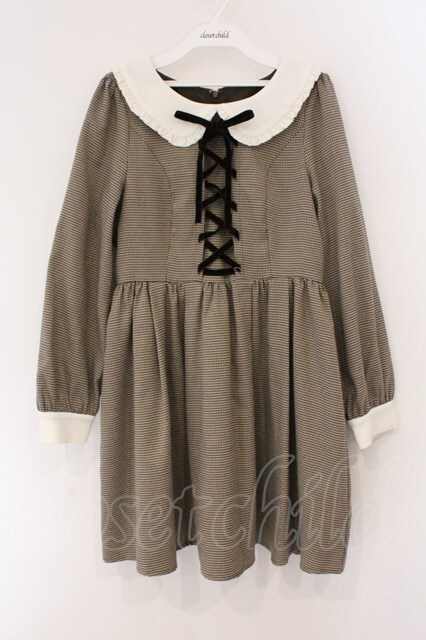 Ank Rouge / レースアップ襟付きワンピース ブラウン O-26-03-19-067-CA-OP-IG-OS
