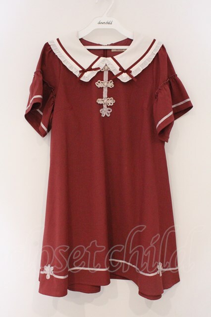Amavel / チャイナモチーフ付フレア袖ワンピース F アカ O-26-03-19-016-CA-OP-OW-OS [2100080000059913-O-26-03-19-016-CA-OP-OW-OS]