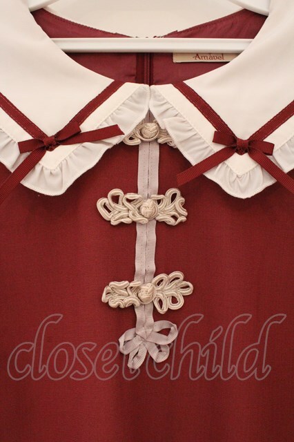 Amavel / チャイナモチーフ付フレア袖ワンピース F アカ O-26-03-19-016-CA-OP-OW-OS