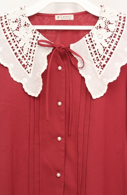 axes femme / バラ刺繍襟ブラウス F アカ×オフシロ O-26-03-18-042-AX-BL-IG-OS [2100080000077246-O-26-03-18-042-AX-BL-IG-OS]
