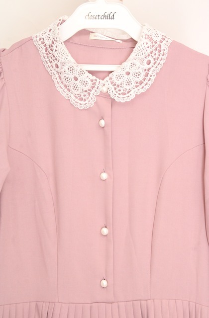 m petit by misako / AM*レースエリプリーツワンピース L ピンク O-26-03-18-088-LO-OP-IG-OS
