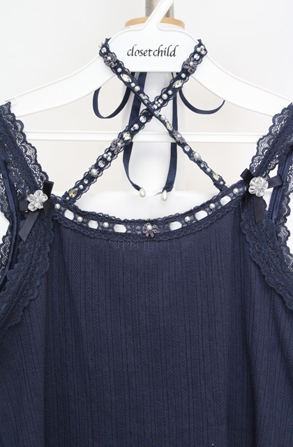 axes femme / クロスストラップキャミソール M ネイビー O-26-03-18-020-AX-TO-IG-OS