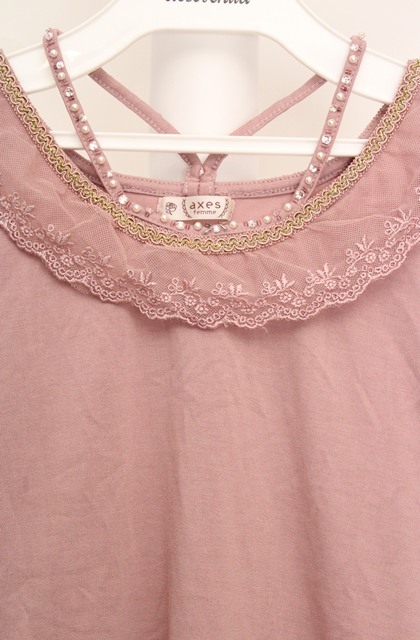 axes femme / ストラップビジュータンク ピンク O-26-03-18-023-AX-TO-IG-OS