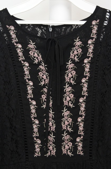 axes femme / 胸元刺繍レースワンピース クロ O-26-03-18-067-AX-OP-IG-OS