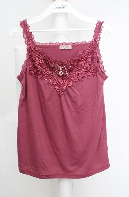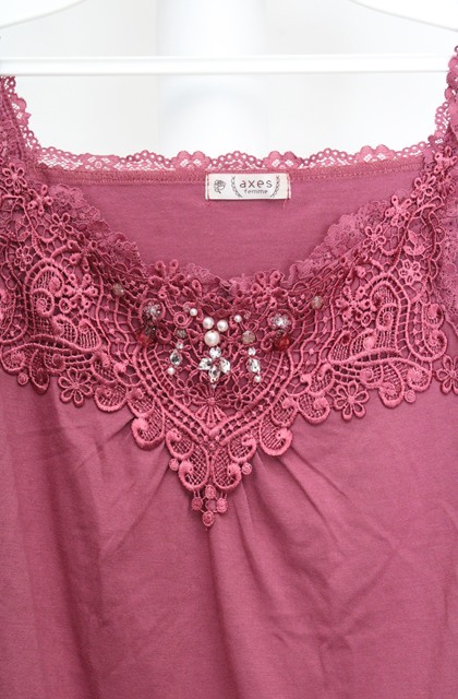 axes femme / レースビジューデザインタンク M ピンク O-26-03-18-021-AX-TO-IG-OS