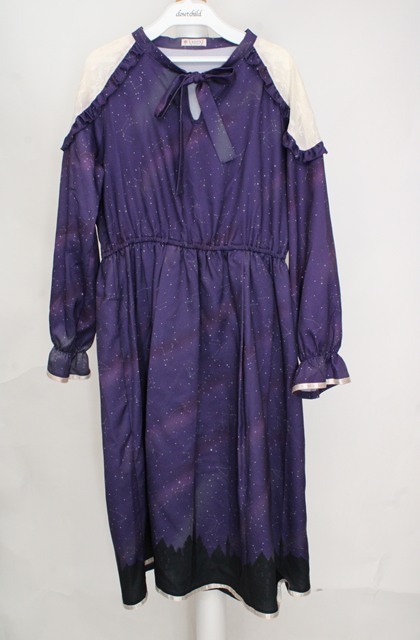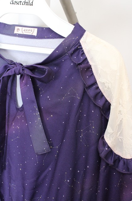 axes femme / 冬の夜空柄肩レース切替ワンピース パープル O-26-03-18-075-AX-OP-IG-OS