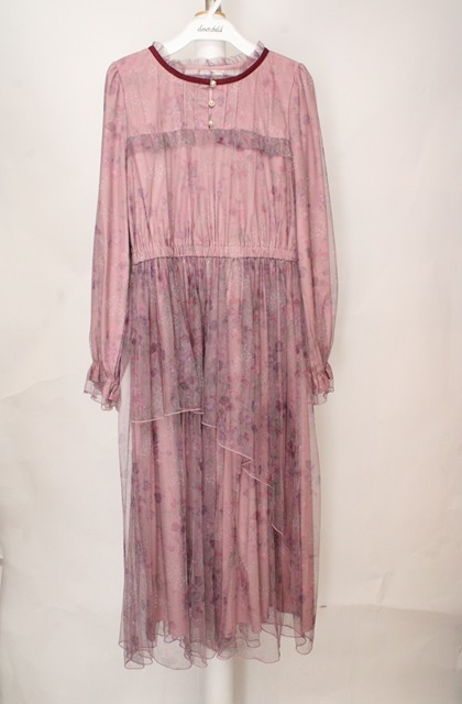 axes femme / スイートピー柄チュールワンピース M ピンク O-26-03-18-078-AX-OP-IG-OS