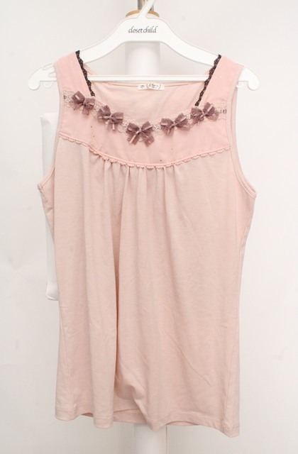 axes femme / BACKリボンタンクトップ M ピンク×ブラウン O-26-03-18-026-AX-TO-IG-OS