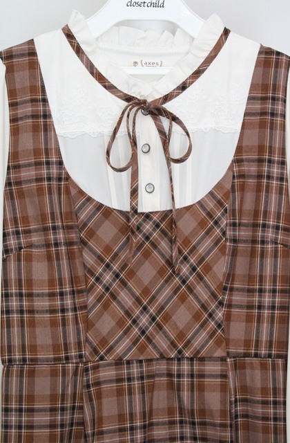 axes femme / チェック柄ドッキングワンピース F ブラウン×オフシロ O-26-03-18-076-AX-OP-IG-OS