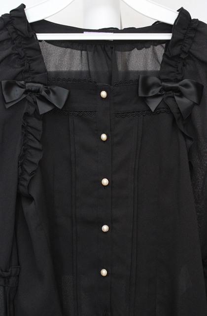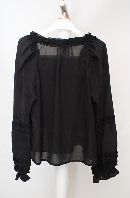 axes femme kawaii / フリルブラウス M クロ O-26-03-18-057-AX-BL-IG-OS