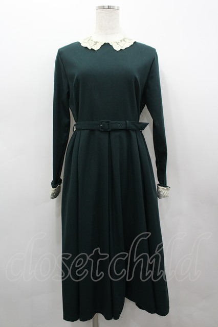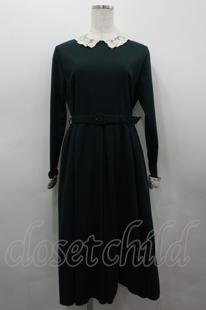 an another angelus / ベルト付きワンピース 緑Xアイボリー I-26-03-19-048-CA-OP-SA-ZI