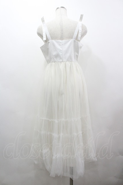 evelyn / チュール重ね肩リボンジャンパースカート アイボリーX白 I-26-03-19-055-LO-OP-SA-ZI