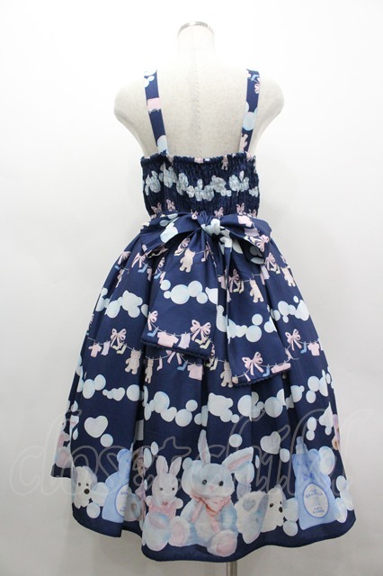 axes femme kawaii / ランドリー柄ジャンスカ ネイビー I-26-03-19-083-AX-OP-SA-ZI