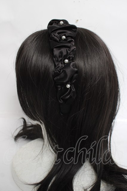 axes femme / パールギャザーカチューシャ 黒 Y-26-03-20-011-AX-AC-SZ-ZY